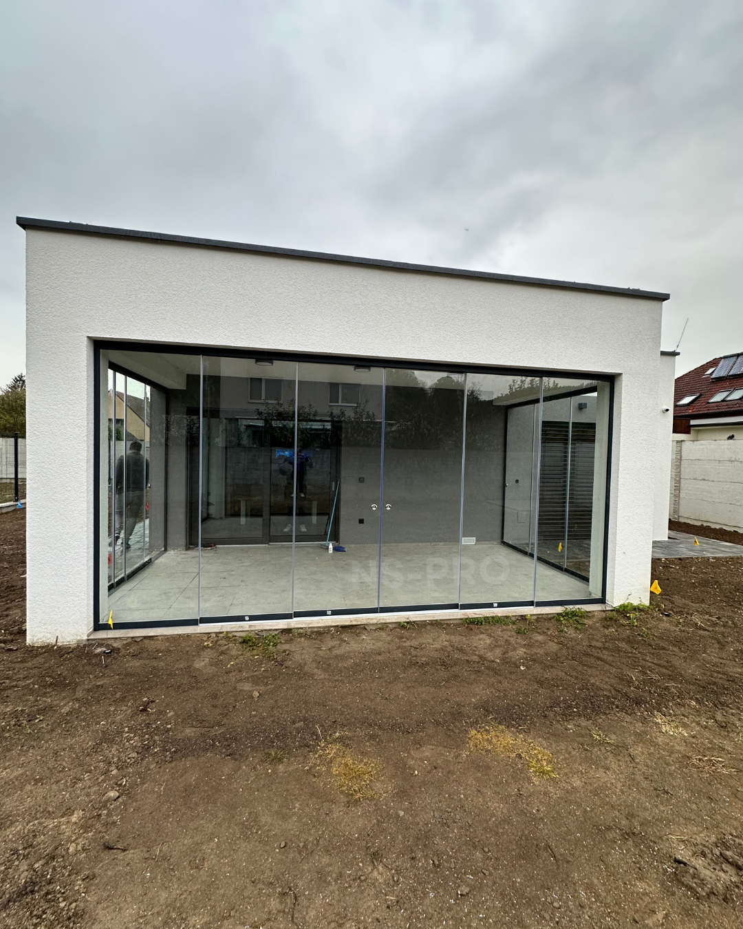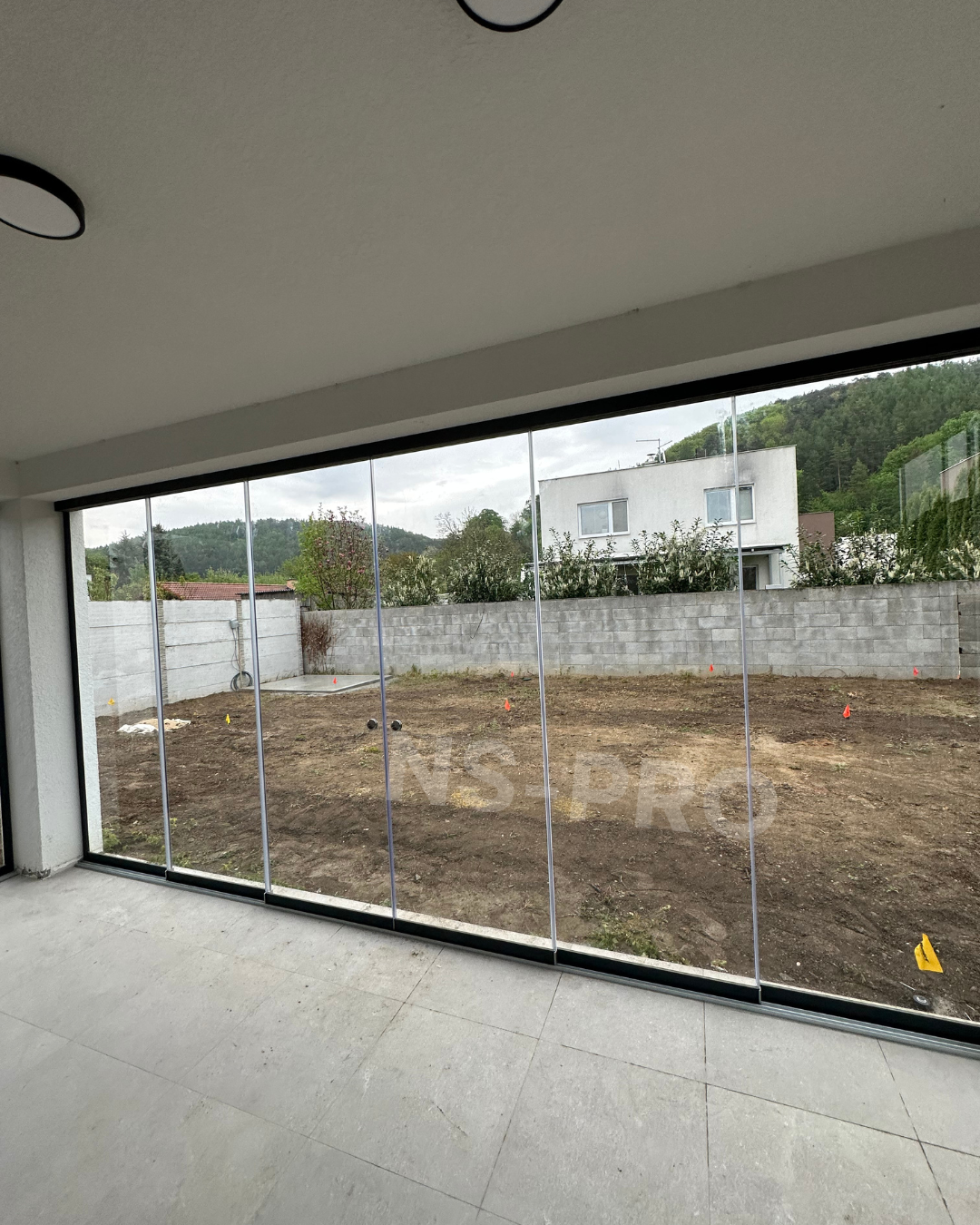 Nový posuvný systém NS-SLIDE je najinovatívnejšie, najjednoduchšie a najodolnejšie riešenie na trhu bezrámových zasklení. Slúži najmä pre rozdelenie priestoru v dome, vo firmách či reštauráciách, ale taktiež ako aj zasklenie zimných záhrad a pergolí.