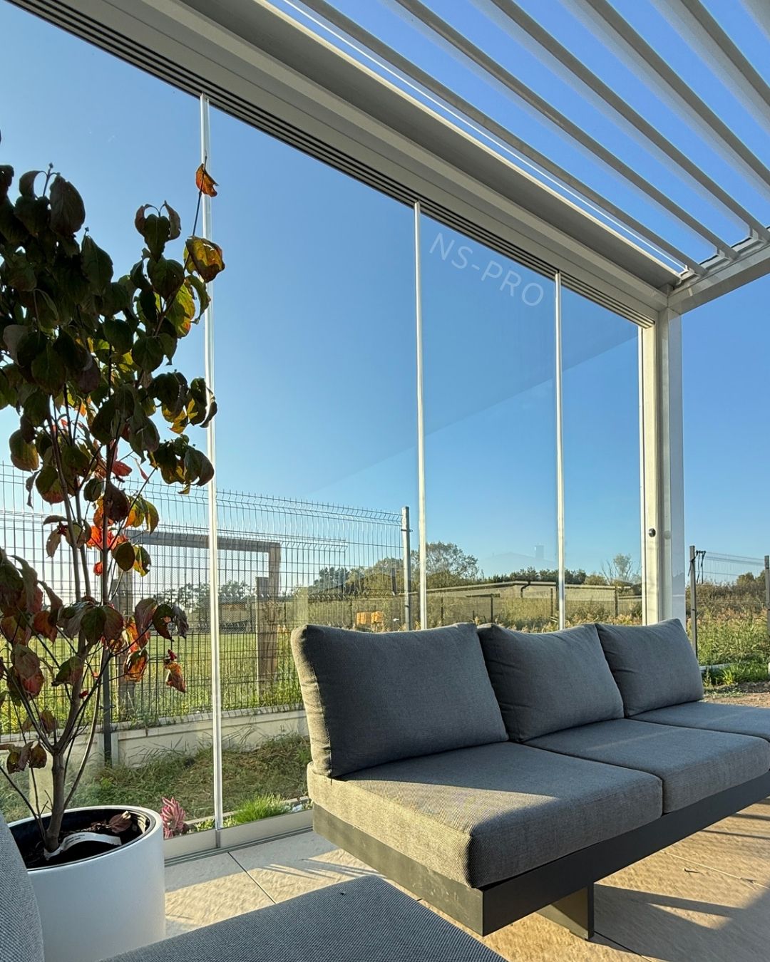 Zasklenie je možné inštalovať do našej zimnej záhrady NS-CLASSIC a bioklimatickej pergoly NS-PROBIO alebo akýchkoľvek priestorov.