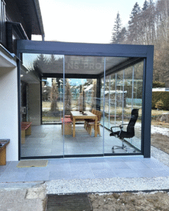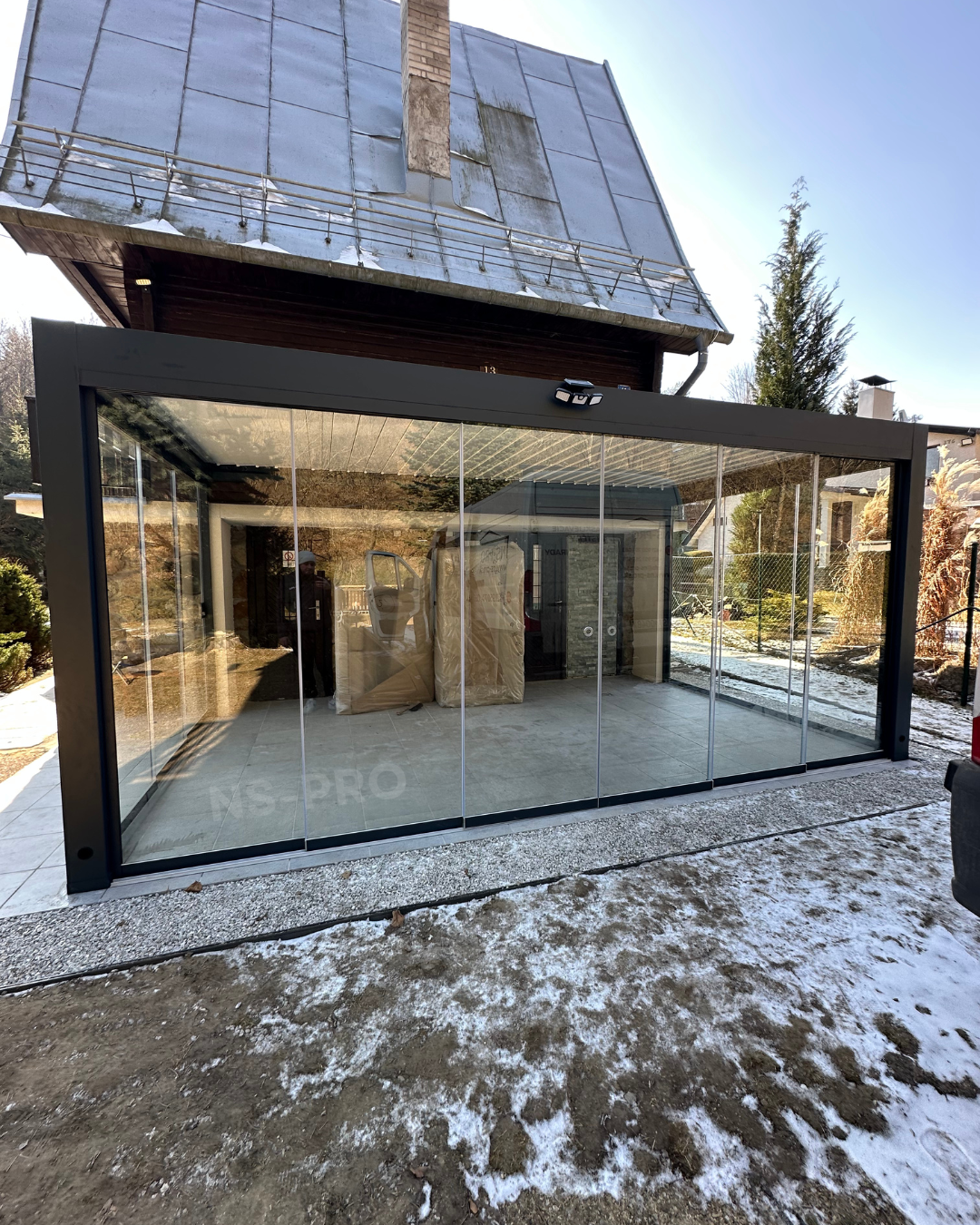 - Bioklimatickú zimnú záhradu je možné realizovať s akýmkoľvek posuvným zasklením z našej ponuky
