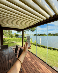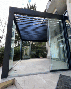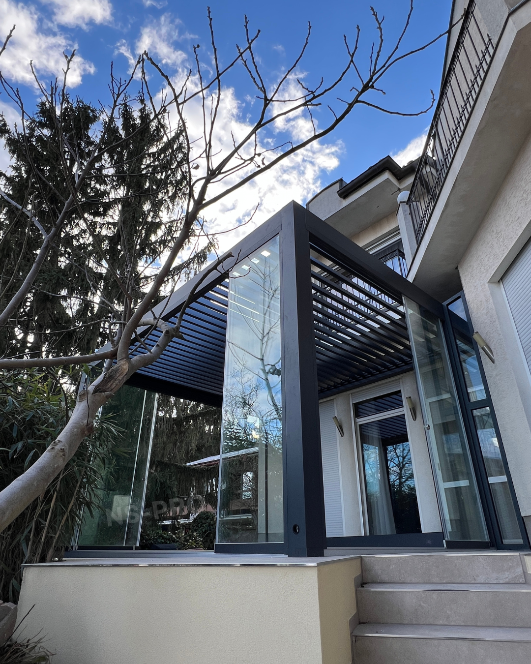 Bioklimatická zimná záhrada je dokonalým spojením moderného dizajnu a funkčnosti, ktorá zároveň zvýši hodnotu vašej nehnuteľnosti. Je ideálna voľba pre tých, ktorí chcú obohatiť svoj exteriér o elegantný dizajn a zároveň byť v spojení s prírodou počas celého roka. Vďaka otočným lamelám na diaľkové ovládanie je možné terasu prirodzene vetrať, čím nedochádza ku kumulovaniu tepla a teda k skleníkovému efektu v porovnaní s klasickou sklenenou zimnou záhradou. Zároveň umožňuje regulovať intenzitu a smer slnečného žiarenia.